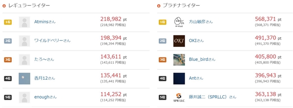 またプラチナライター向けの勉強会や交流会も開催され、手厚いサポートを受けられます。